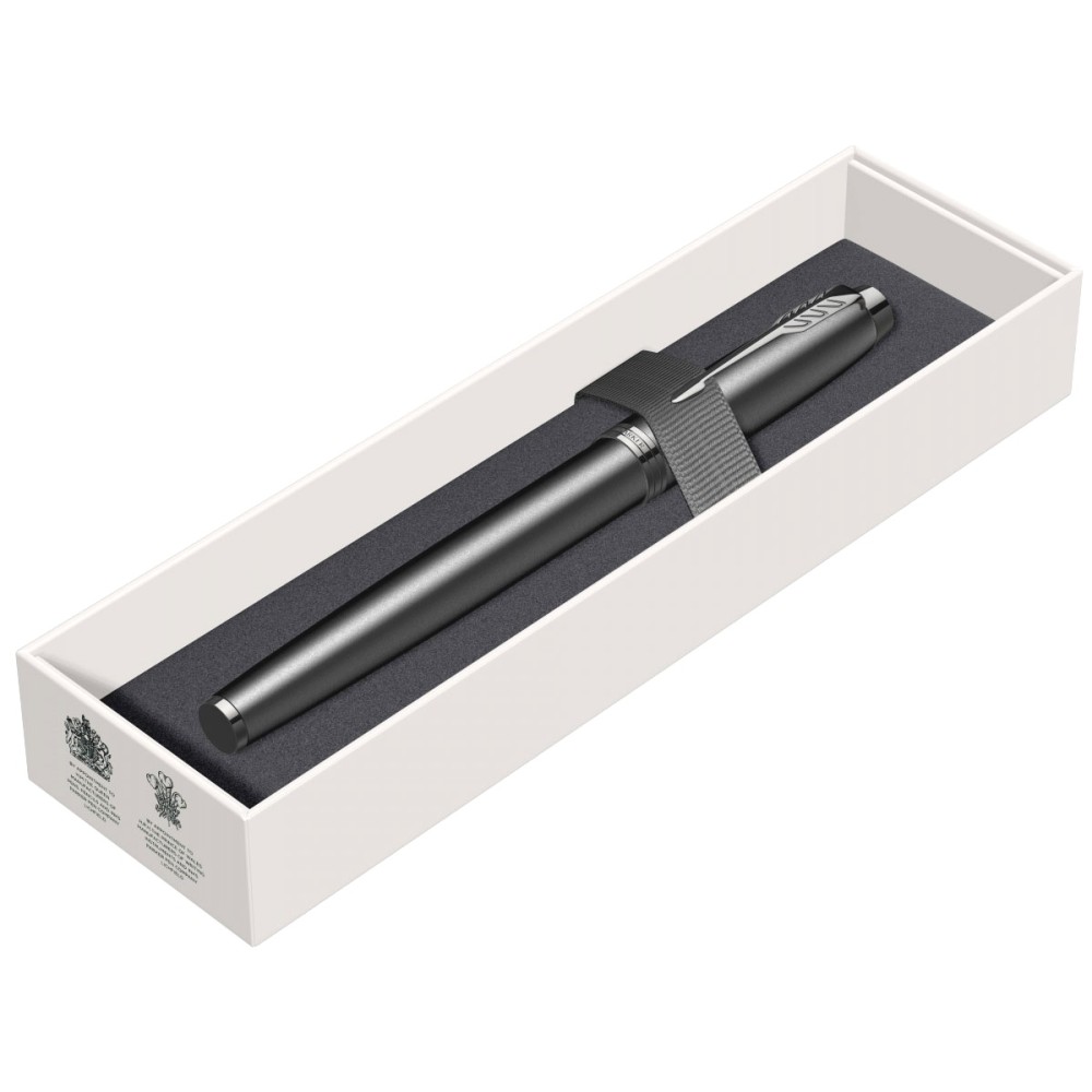 В 2020 году Parker запускает в классической коллекции IM специальную серию под названием Achromatic, включающую 2 новые отделки, которые отражают модные тенденции этого года: монохромные цвета и матовый дизайн. Перьевая ручка Parker IM Achromatic Matt Black выполнена из нержавеющей стали, покрытой темно-серым матовым лаком, а детали дизайна, включая перо, украшены специальным блестящим покрытием черного цвета, нанесенным по технологии PVD.